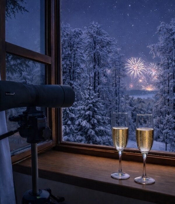 Minden erdőre néző szobában állványos szarvasnéző távcső